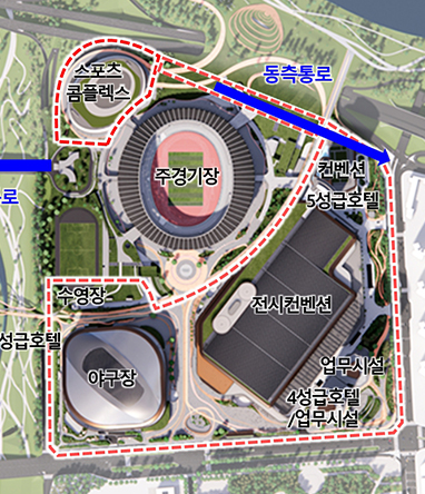 서울시는 잠실종합운동장 일대를 국제교류 복합지구로 지정하여 회의, 포상 관광, 컨벤션, 전시 등 부가가치가 높은 사업 공간으로 조성하는 '잠실 스포츠·MICE 복합개발 사업'을 추진 중입니다.