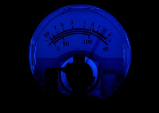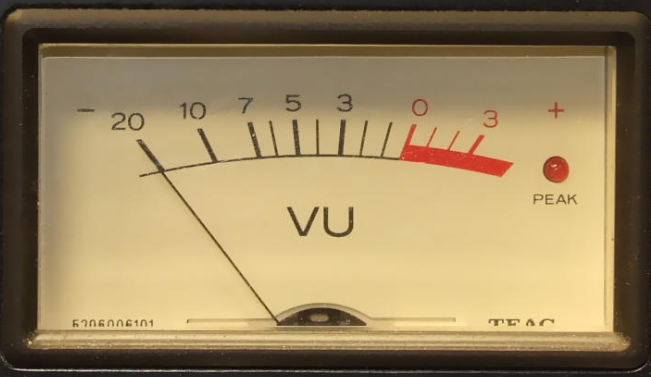 표준 VU미터는 특별히 진폭이 감쇠된 볼리스틱 응답(ballistic response)을 하게끔 고안되어 있는데, 이는 VU미터가 개개의 사운 드 피크에 반응하기보다는 평균적인 사운드 볼륨에 응답하도록 하게 해준다. 미터는 이중자를 가진다. 위쪽의 척도는 20에서 0, 그리고 빨간색으로 표시된 0에서 +3까지의 음량단위로 되어 있다. 0은 왜 곡없는 아주 정상의 상태를 표시한다. 0을 넘어서는 부분은 빨간색 으로 되어있는데, 이는 입력이 과대하다는 것을 나타내기 위해서다.