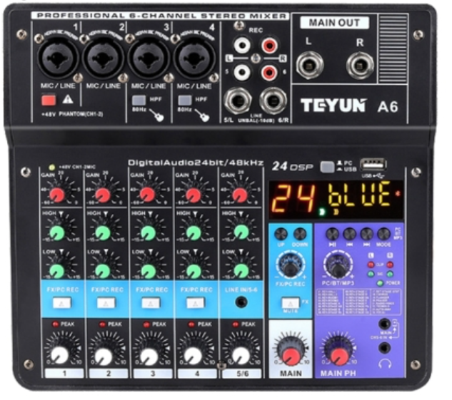 입력 1번은 마이크로 사용시 보통 뮤트 기능(muting capablity)을 가진다. 회전식의 각 입력포트(pot)의 아래 고정된 위치에는 디텐트 큐 선택(etent Cue swich) 지점이 있다. 이러한 콘술에는 오디션 버스나 채널오프 키 스위칭(channel oft key switching) 기능은 없다. 입력 A 또는 B를 선택하는 선택 키 위에는 마스터 포트(master pot), 모니터 포트(monitor pot), 큐 포트(cue pot)가 있으며, 그 뒤에 폰 포트(phone pot)와 선택 스위치 그리고 VU미터가 자리잡 고 있다. 모니터 포트는 모니터 증폭기를 통제하며, 큐 포트는 큐 앰 프(cue amp)와 믹서(mixer) 1번이 켜져 있을 때 뮤트되는 내장 큐 스피커를 통제한다. 뮤팅(muting)은 다른 입력에도 사용가능한데 필요하면 묶어질 수도 있다. 헤드폰 잭은 콘솔의 오른쪽 아래에 놓여 있으며, 프로그램 버스, 큐 버스 또는 외부 소스로 전환할 수 있다.