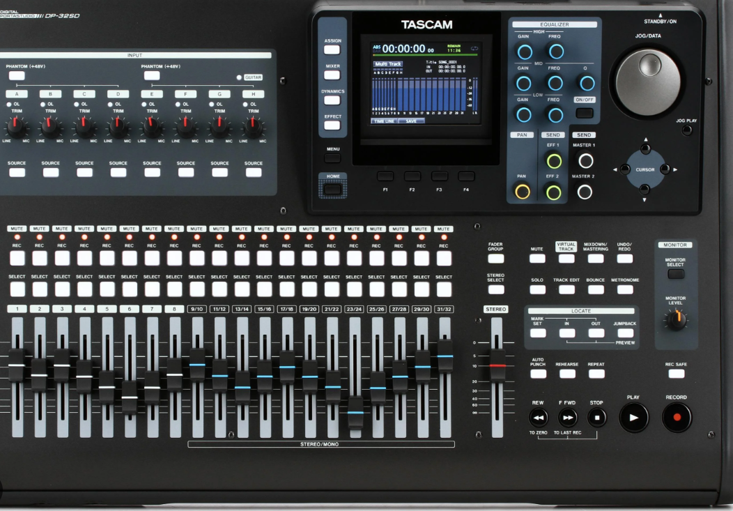 TASCAM은 TEAC의 전문제품이다. 입력의 수에 따라서 콘솔입 력 스펙트럼의 양극에 설치되는 제품중 2개를 살펴보자.