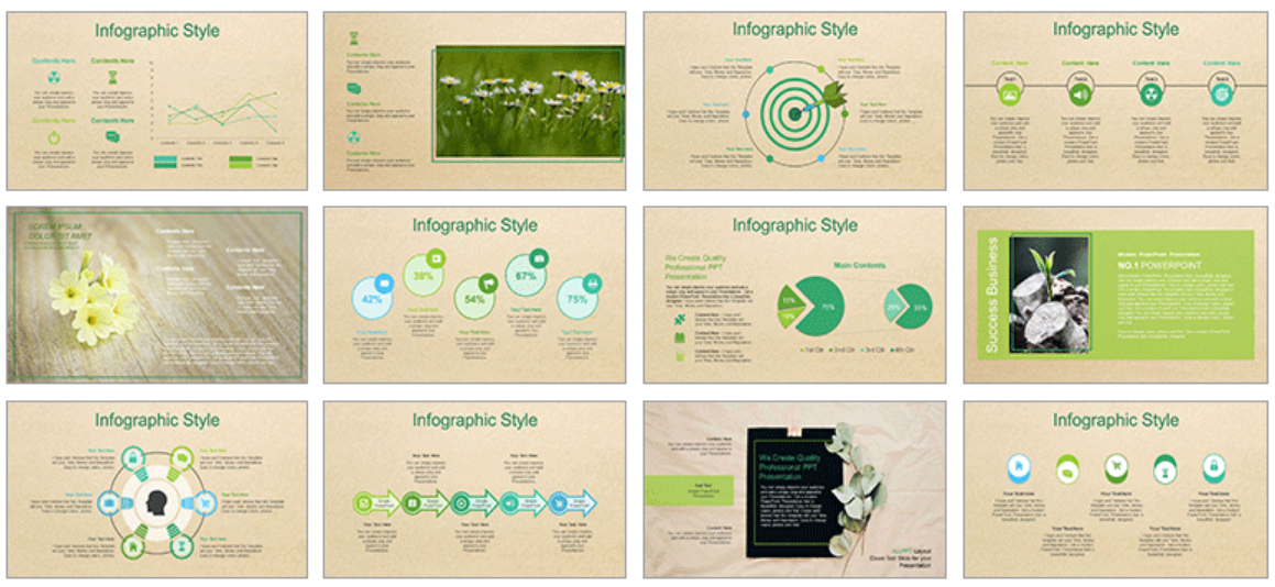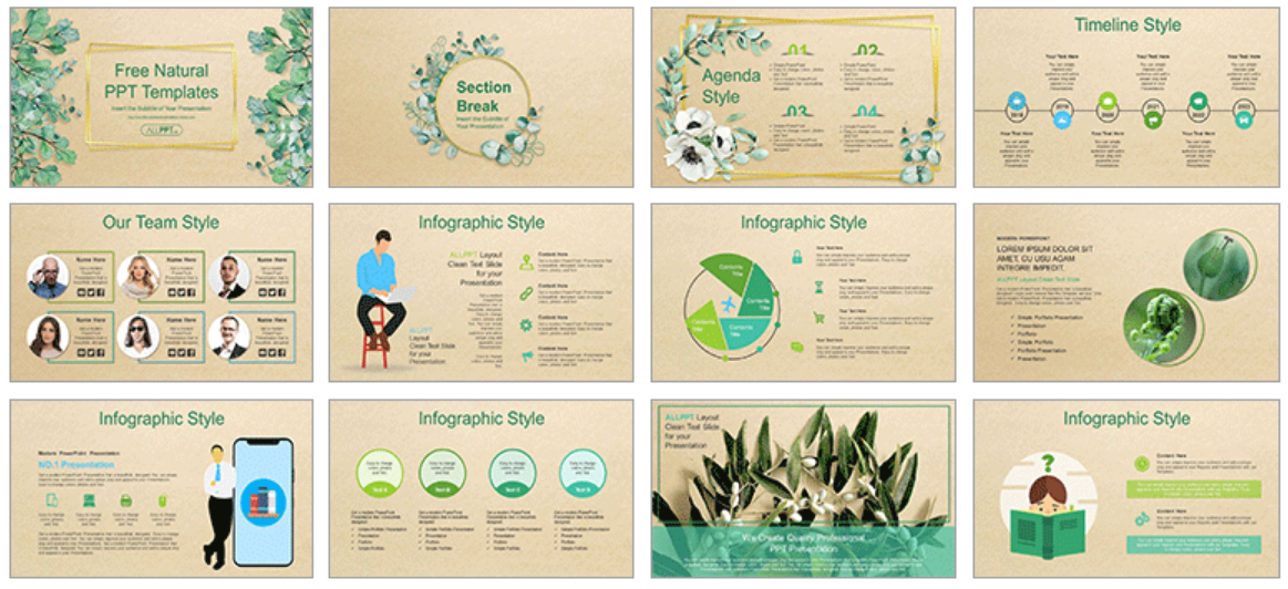 1. 자연 보호 캠페인: 자연 보호와 관련된 캠페인 발표에서, 수채화 스타일의 녹색 잎과 나뭇가지 이미지를 활용하여 자연의 아름다움을 강조할 수 있습니다.